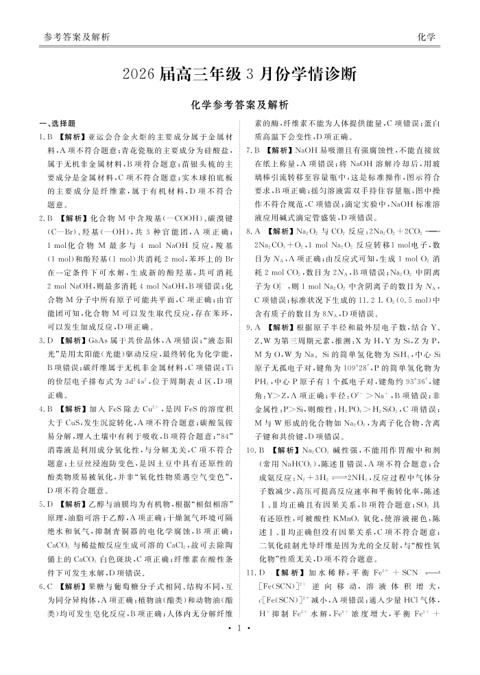 广东省衡水金卷2026届高三年级3月份学情诊断 化学答案.pdf