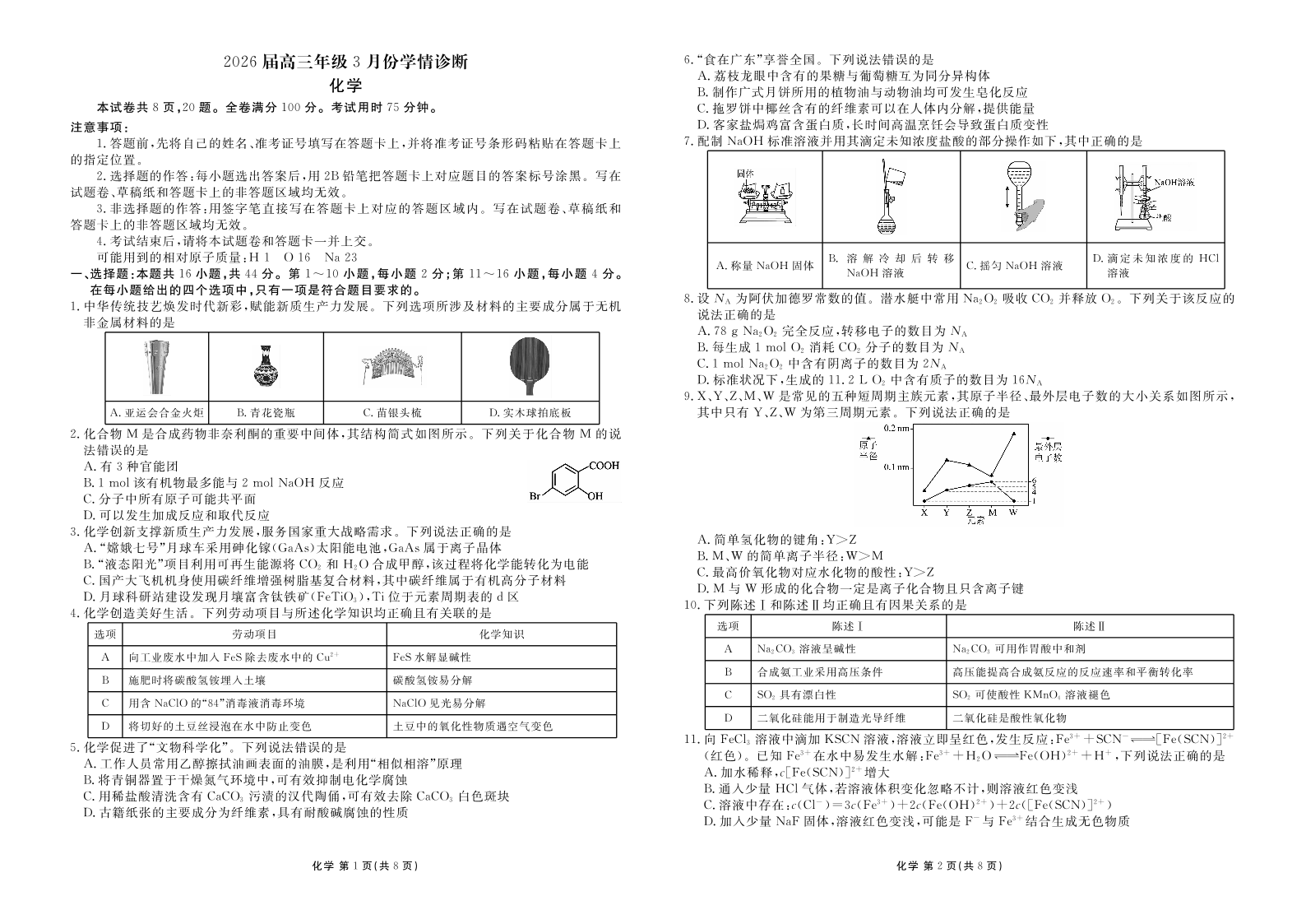广东省衡水金卷2026届高三年级3月份学情诊断 化学.pdf