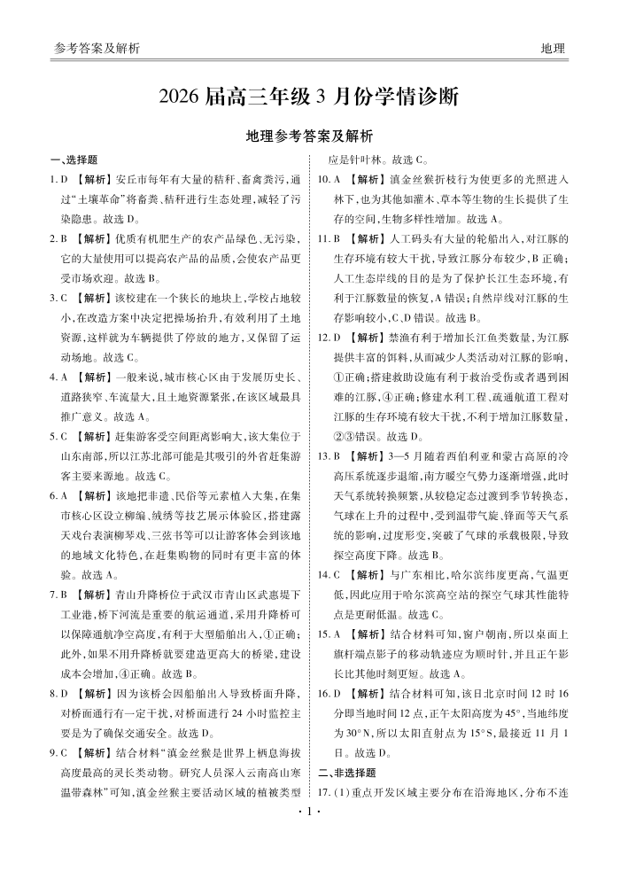 广东省衡水金卷2026届高三年级3月份学情诊断 地理答案.pdf