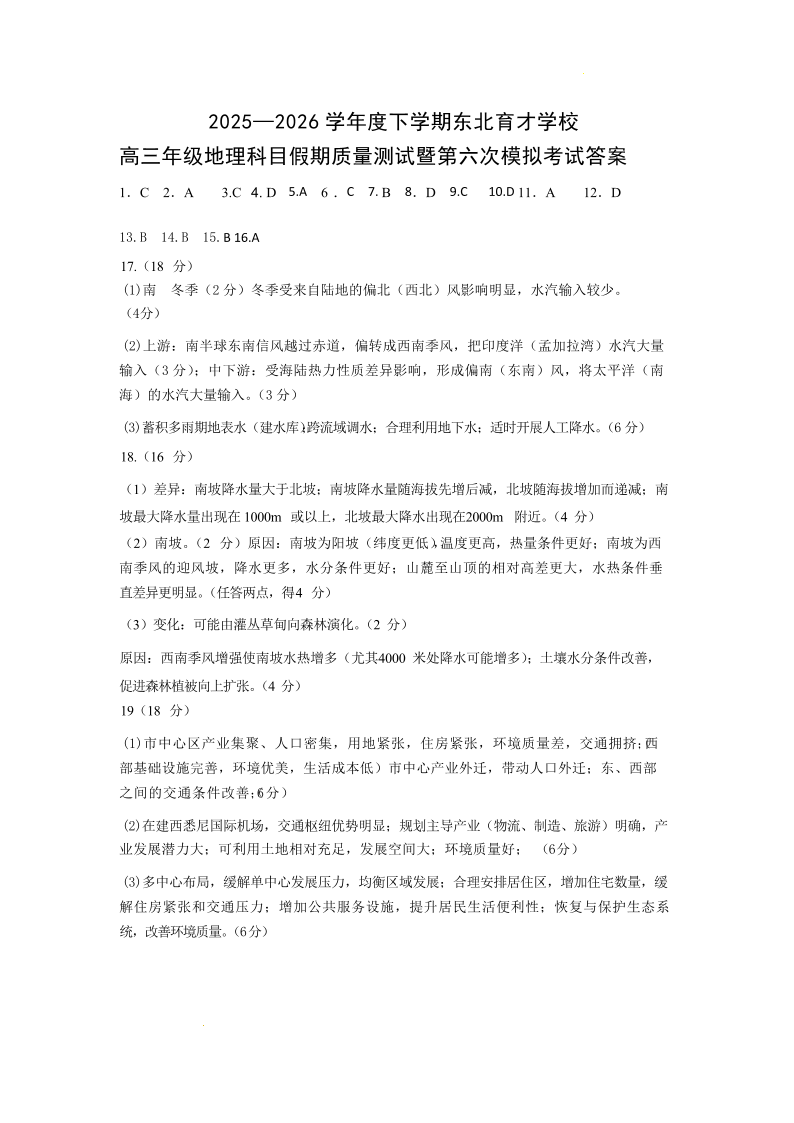 东北育才学校2025-2026学年高三下学期第六次模拟考试 地理答案.pdf