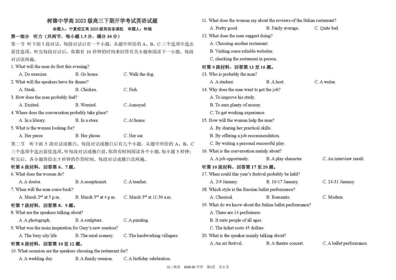 树德中学高2023级高三下期开学考试 英语试题(含答案).pdf