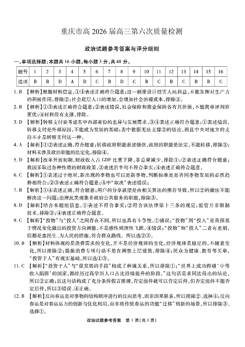重庆市南开中学高2026届高三第六次质量检测 政治答案.pdf