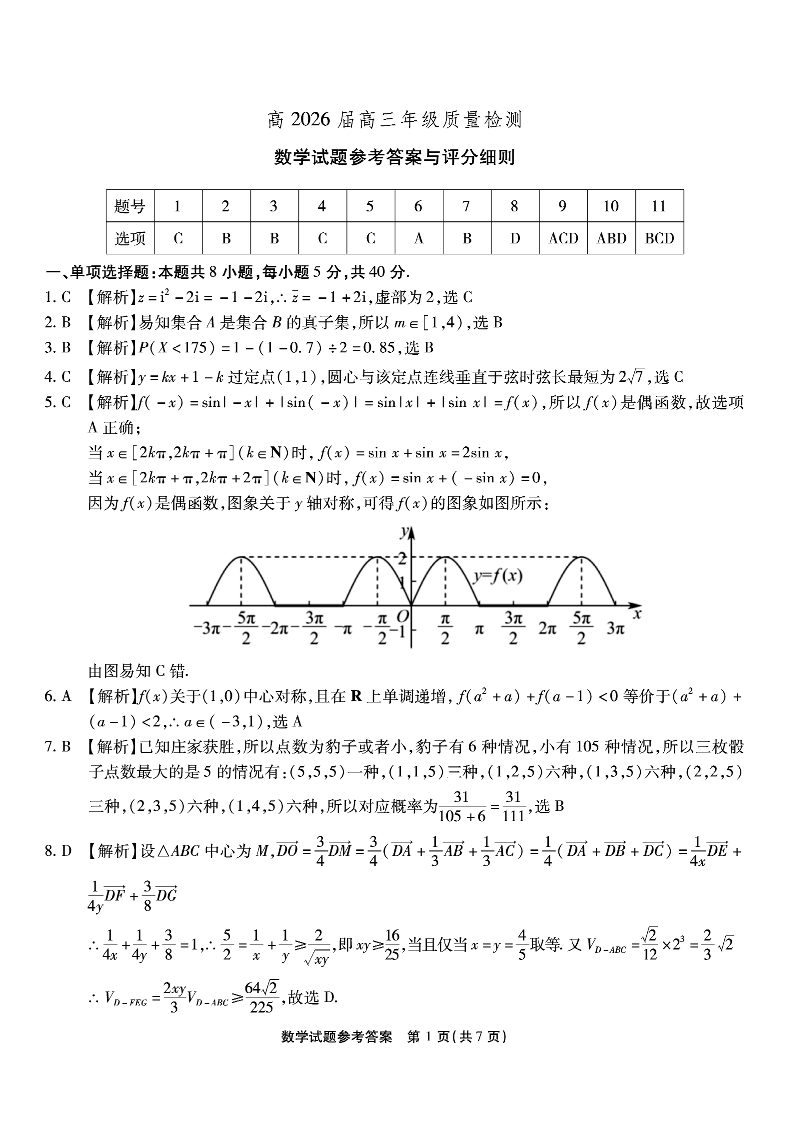 重庆市南开中学高2026届高三第六次质量检测 数学答案.pdf