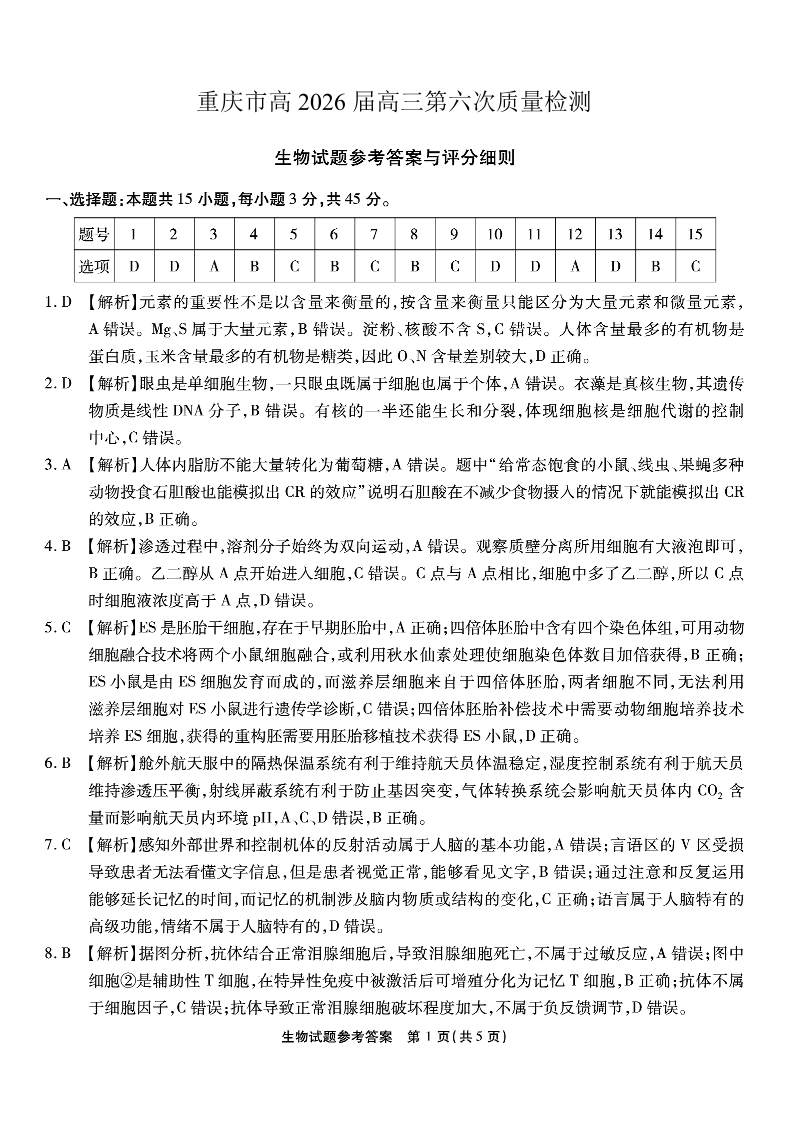 重庆市南开中学高2026届高三第六次质量检测 生物答案.pdf