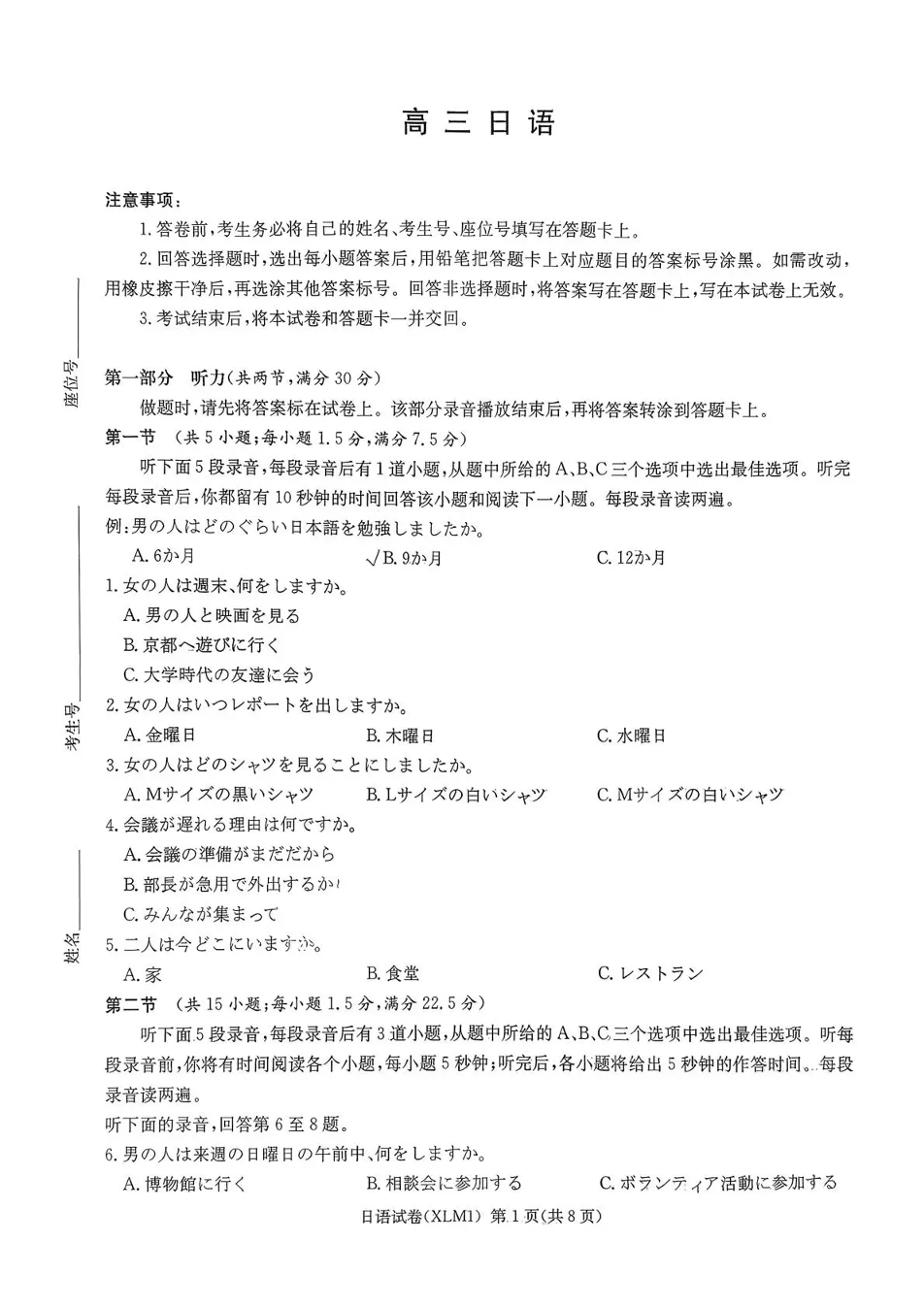(长郡二十校)高三下学期3月第一次(二模)联考 日语.pdf