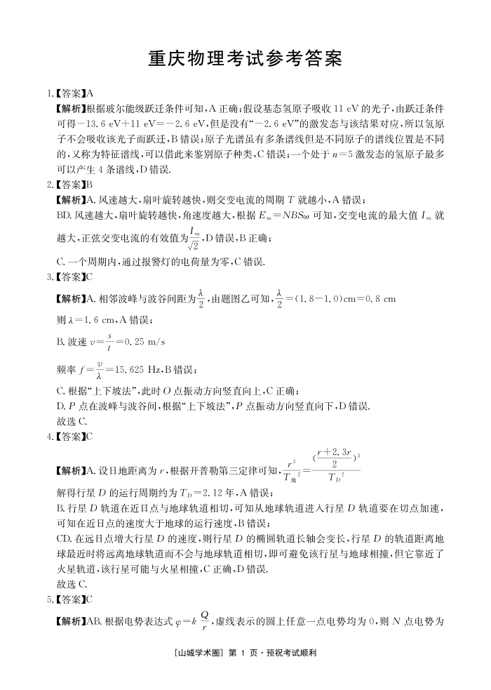 重庆好教育联盟2026届高三下学期3月开学联考 物理答案.pdf