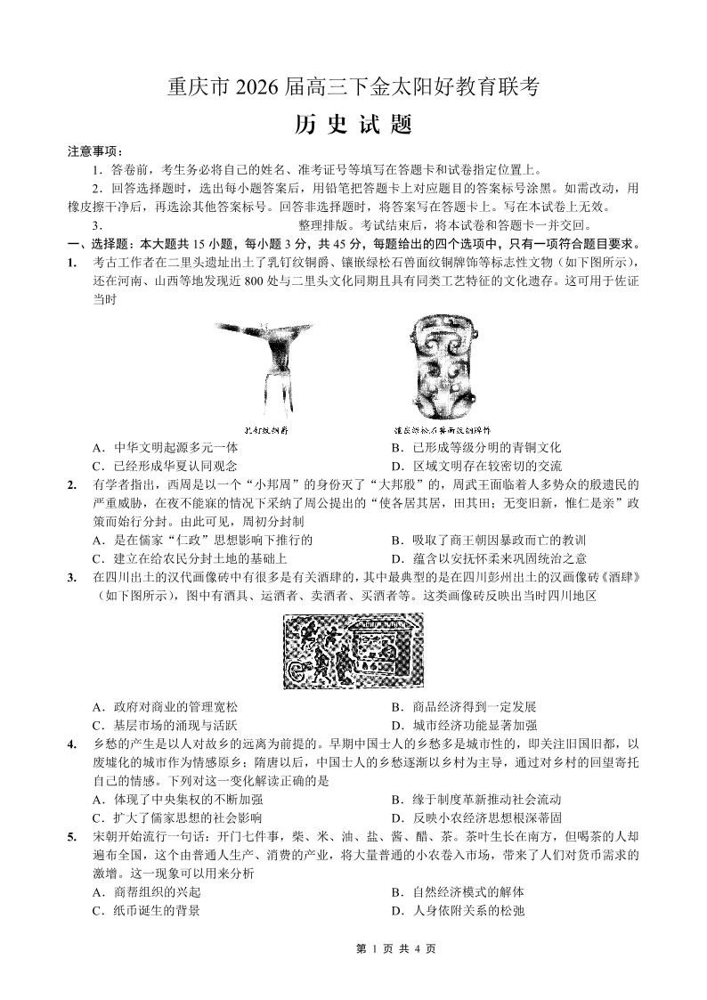 重庆好教育联盟2026届高三下学期3月开学联考 历史.pdf