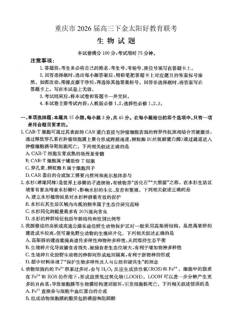 重庆好教育联盟2026届高三下学期3月开学联考 生物.pdf