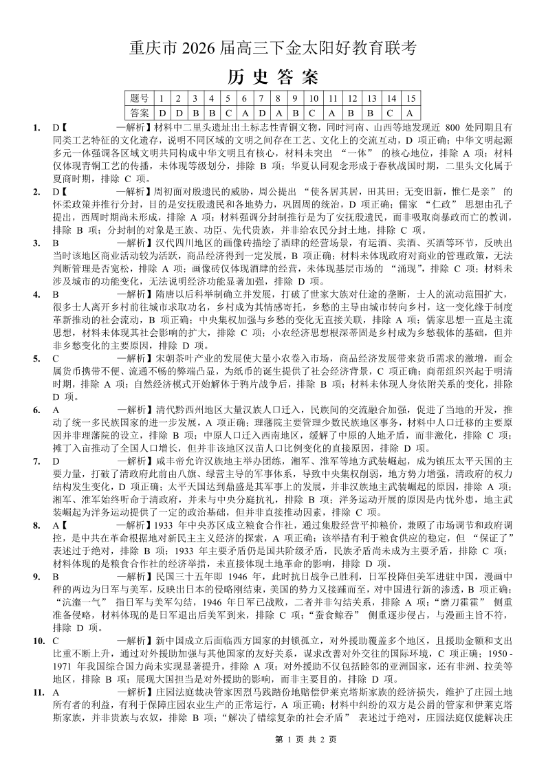 重庆好教育联盟2026届高三下学期3月开学联考 历史答案.pdf