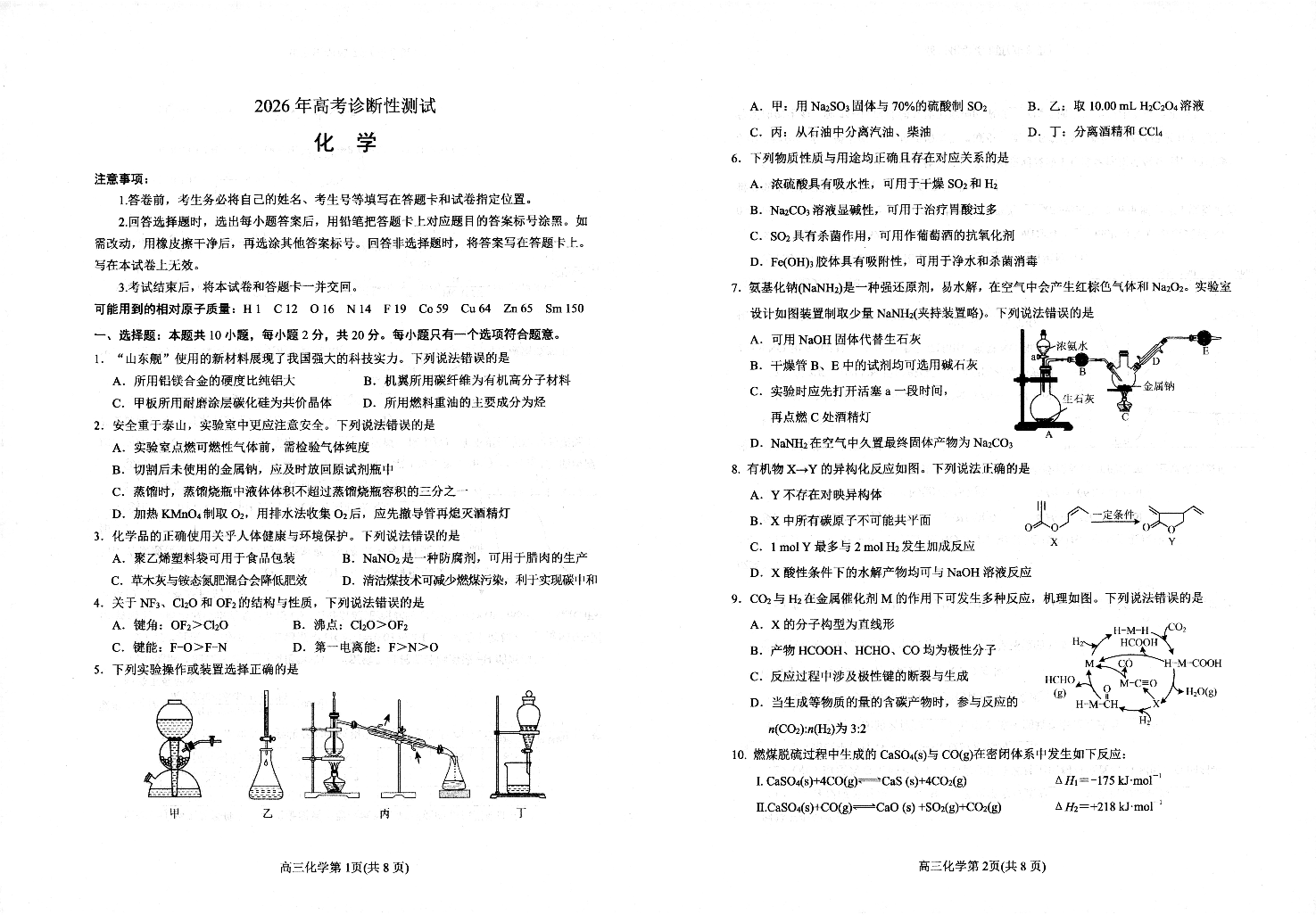烟台市2026年高考诊断性测试 化学试题(含答案).pdf