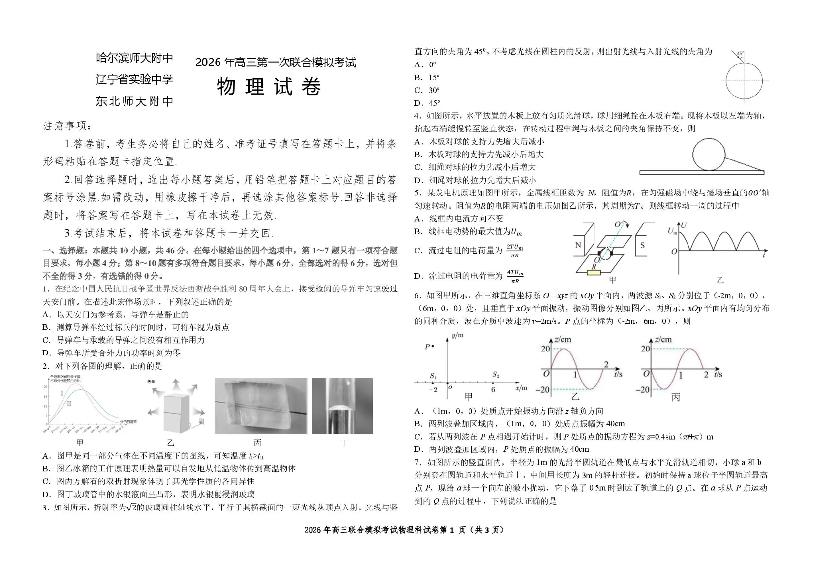 东北三省三校2026年高三第一次联合模拟考试 物理.pdf