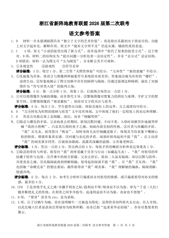 浙江省新阵地教育联盟2026届第二次联考 语文答案.pdf