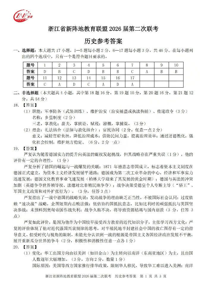 浙江省新阵地教育联盟2026届第二次联考 历史答案.pdf