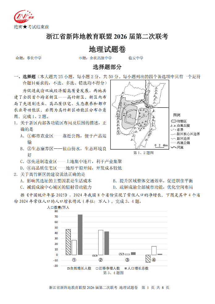 浙江省新阵地教育联盟2026届第二次联考 地理.pdf
