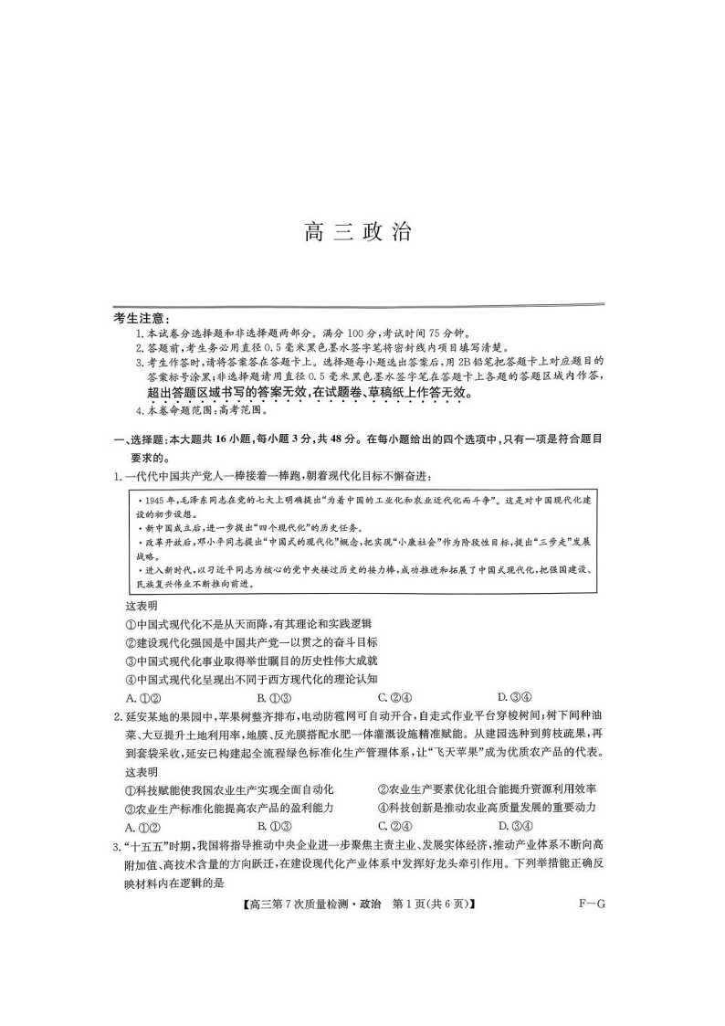 九师联盟2026届高三第7次质量检测 政治.pdf