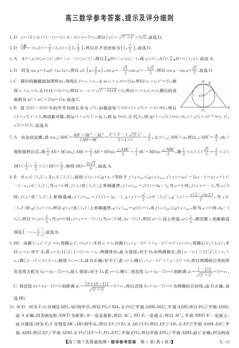 九师联盟2026届高三第7次质量检测 数学答案.pdf