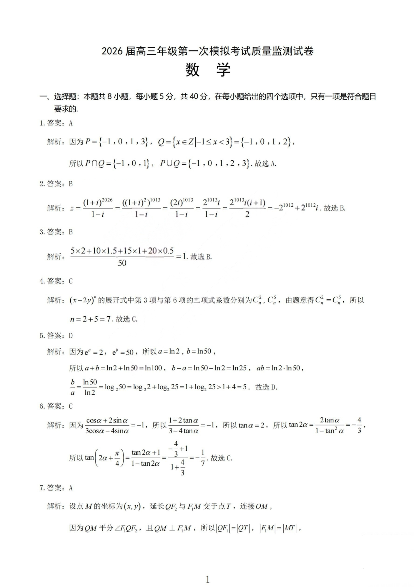 2026届高三年级第一次模拟考试质量监测试卷 数学答案.pdf