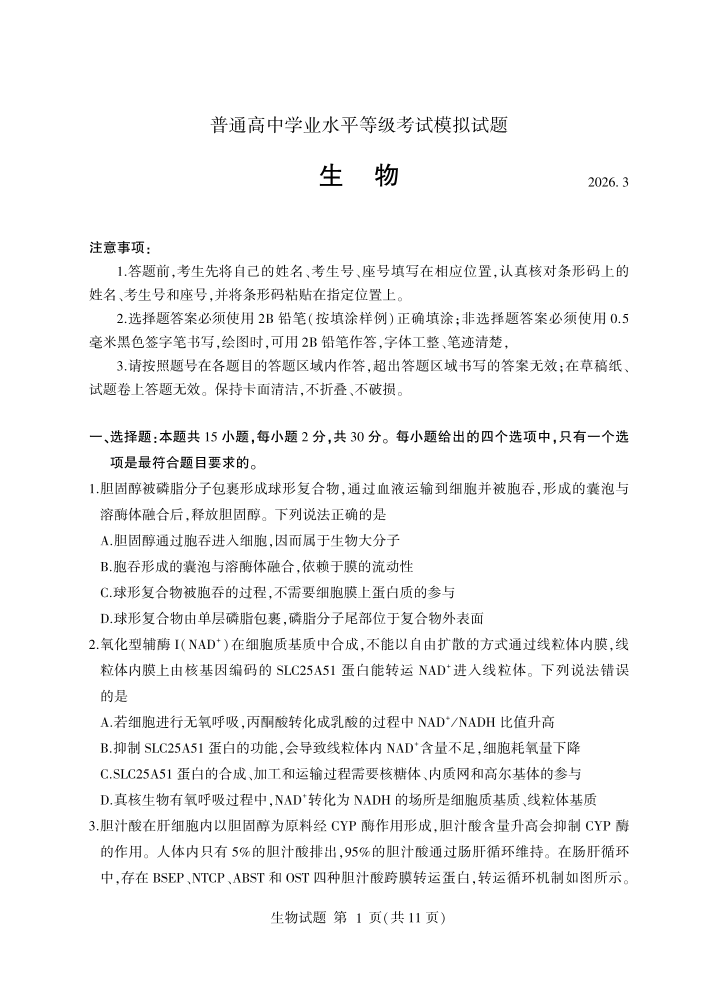 临沂市2026年普通高等学校招生全国统一考试(模拟)生物.pdf