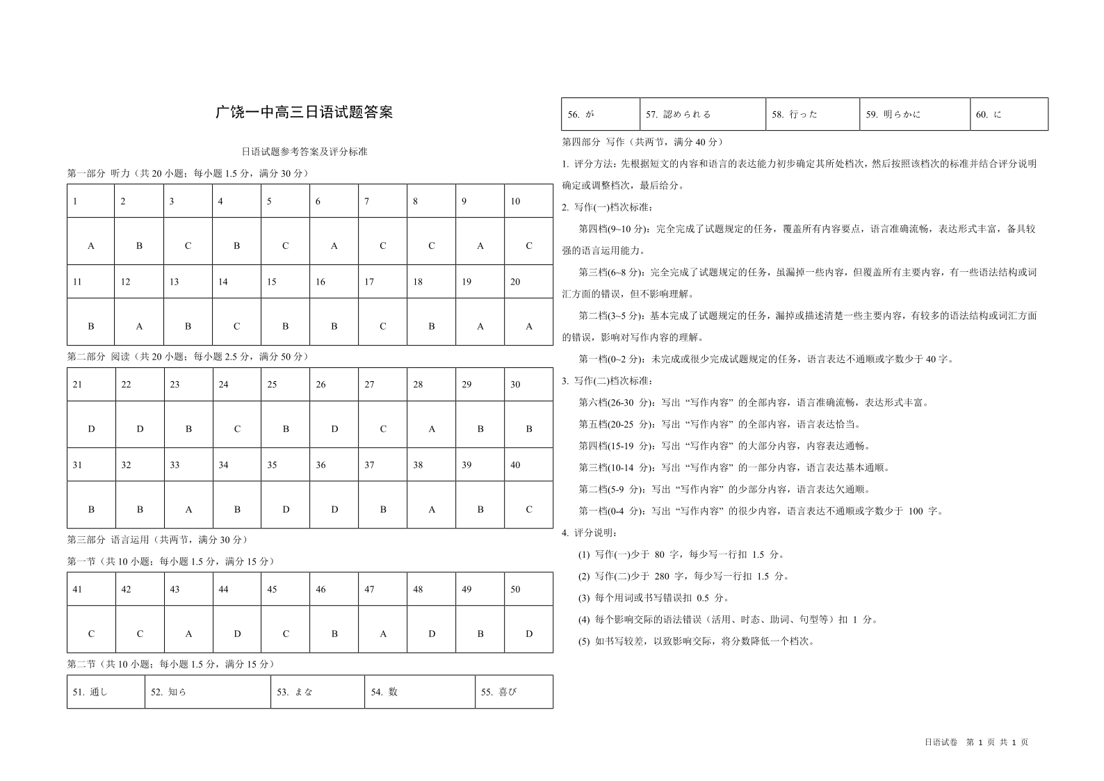 山东省东营市2026届高三年级第一次诊断性测试 日语答案.pdf