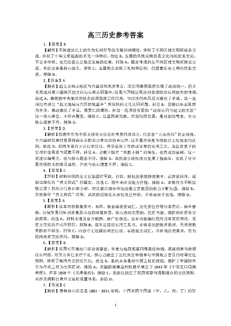 山东省东营市2026届高三年级第一次诊断性测试 历史答案.pdf