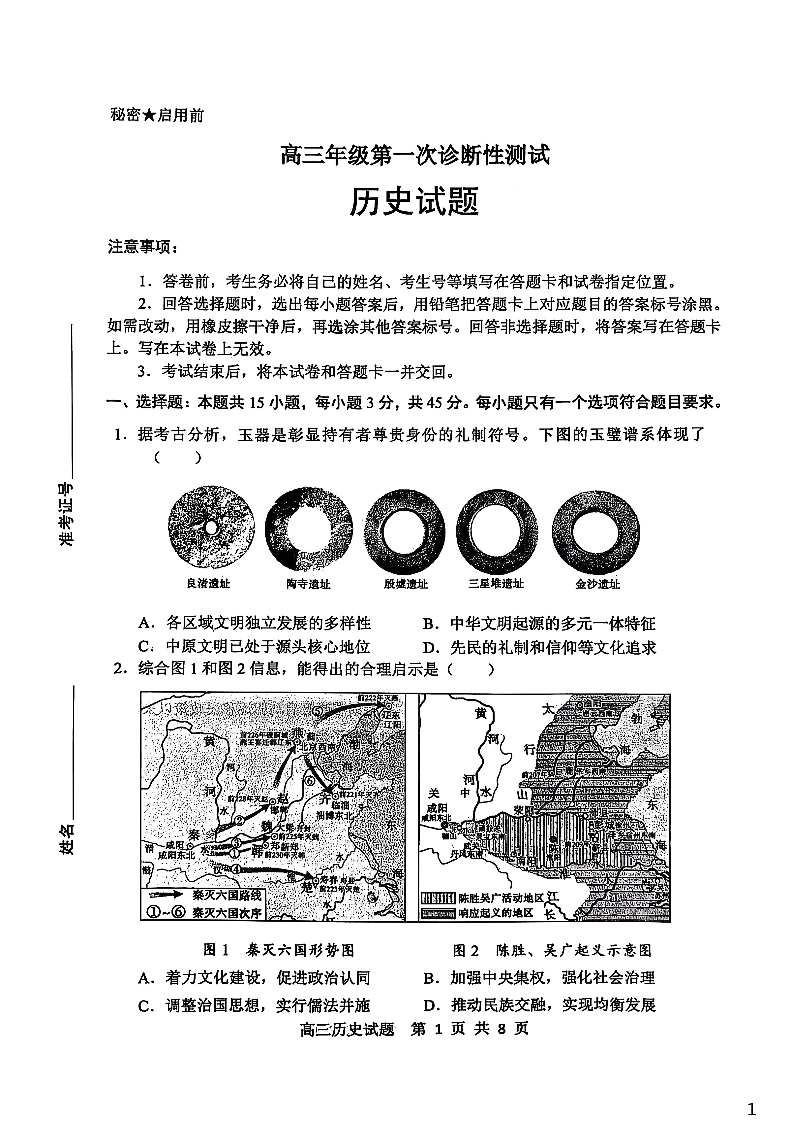 山东省东营市2026届高三年级第一次诊断性测试 历史.pdf