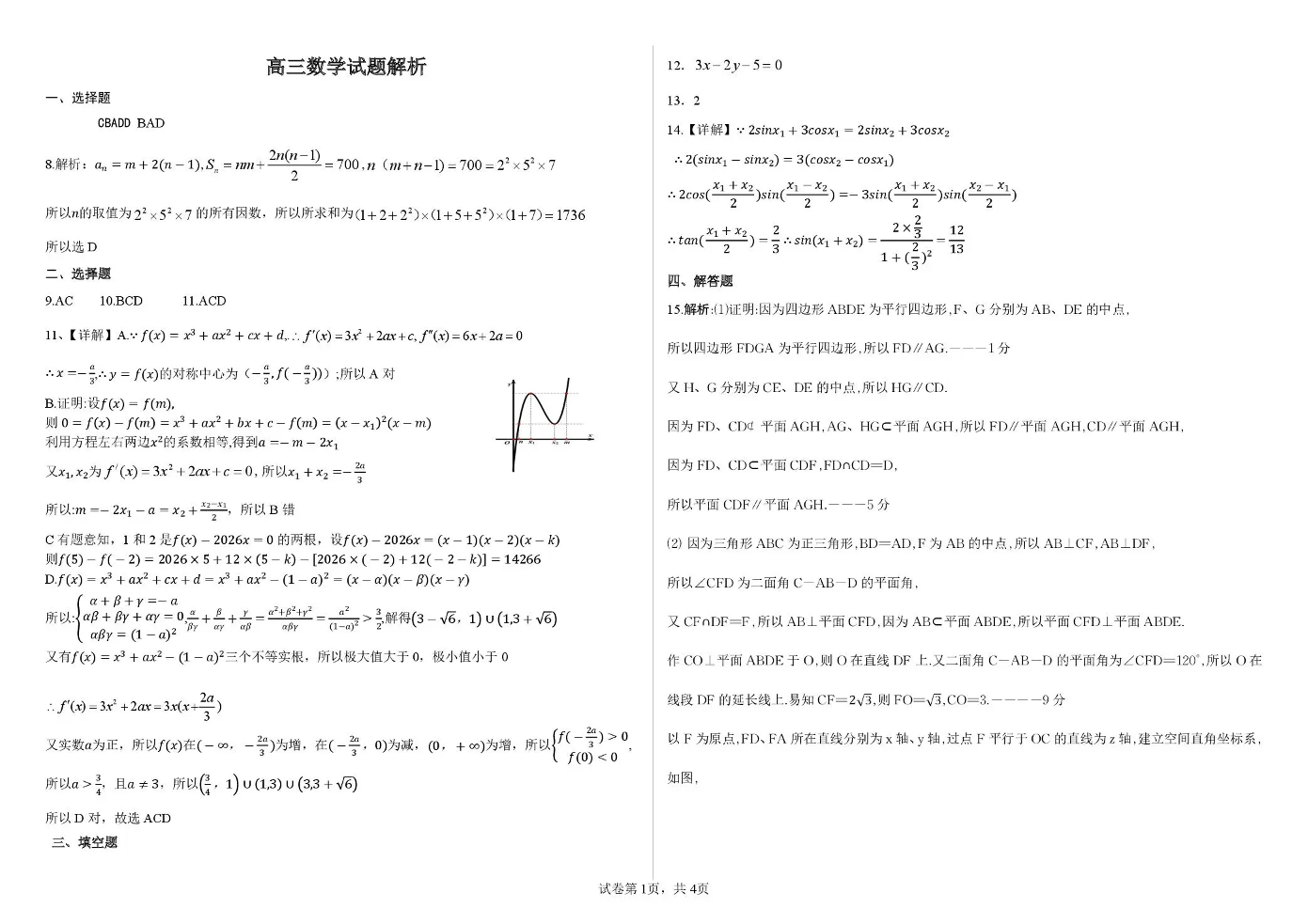 2026年3月襄阳市高三年级统一调研测试 数学答案.pdf