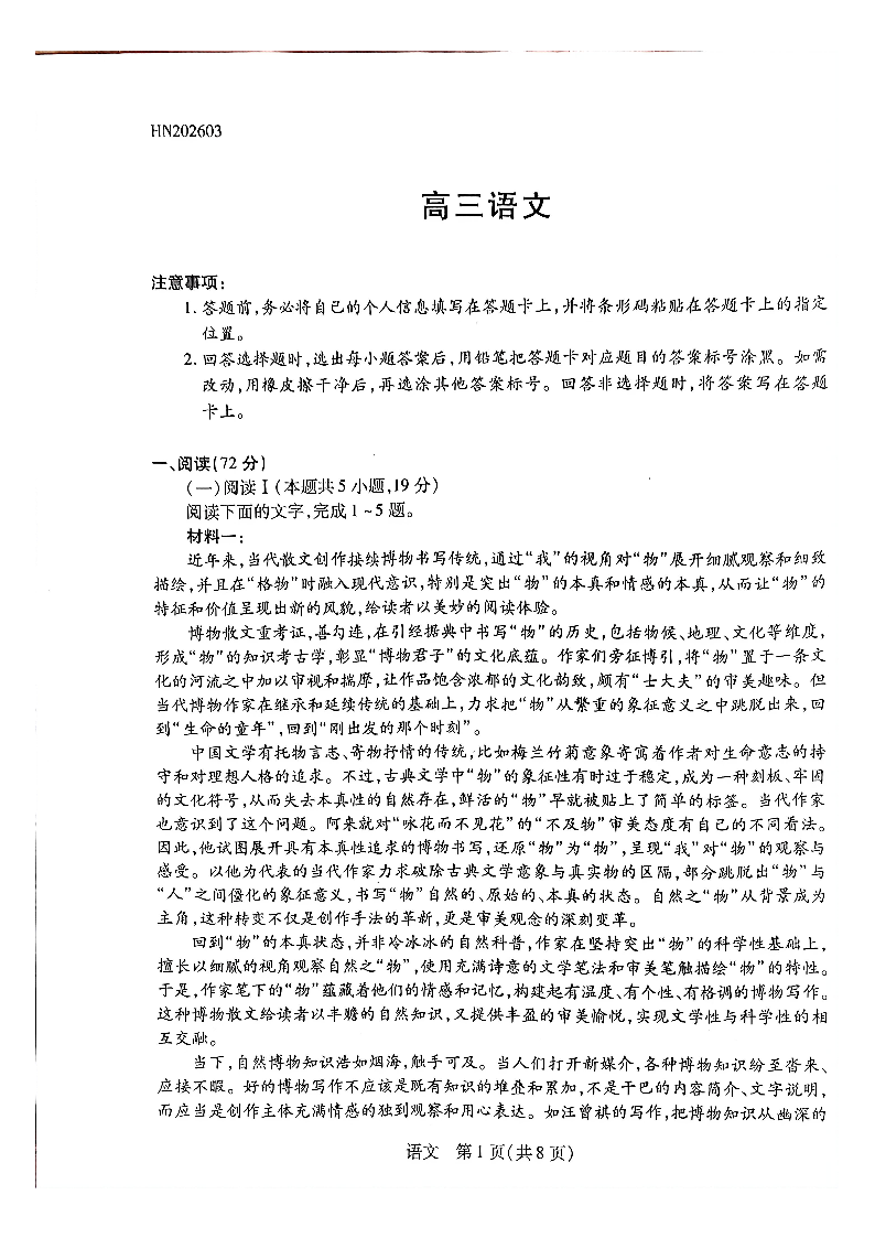 天一大联考河南高三开学考素质评价 语文.pdf