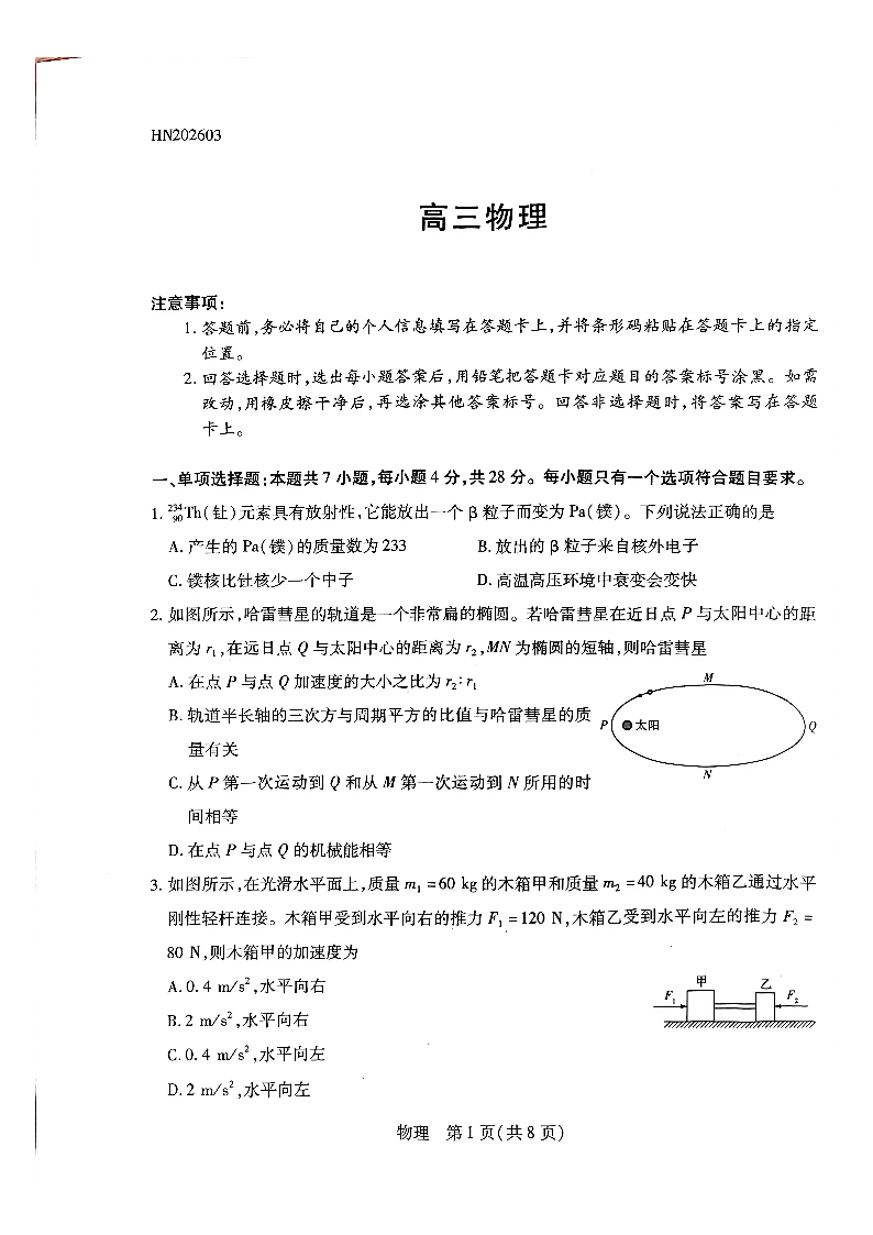 天一大联考河南高三开学考素质评价 物理.pdf