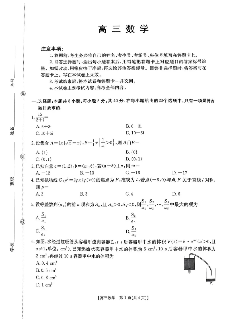 河南省2026届高三下学期3月开学联考 数学.pdf