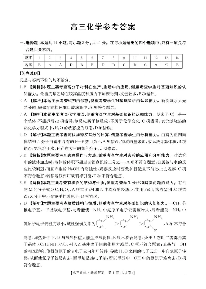 河南省2026届高三下学期3月开学联考 化学答案.pdf