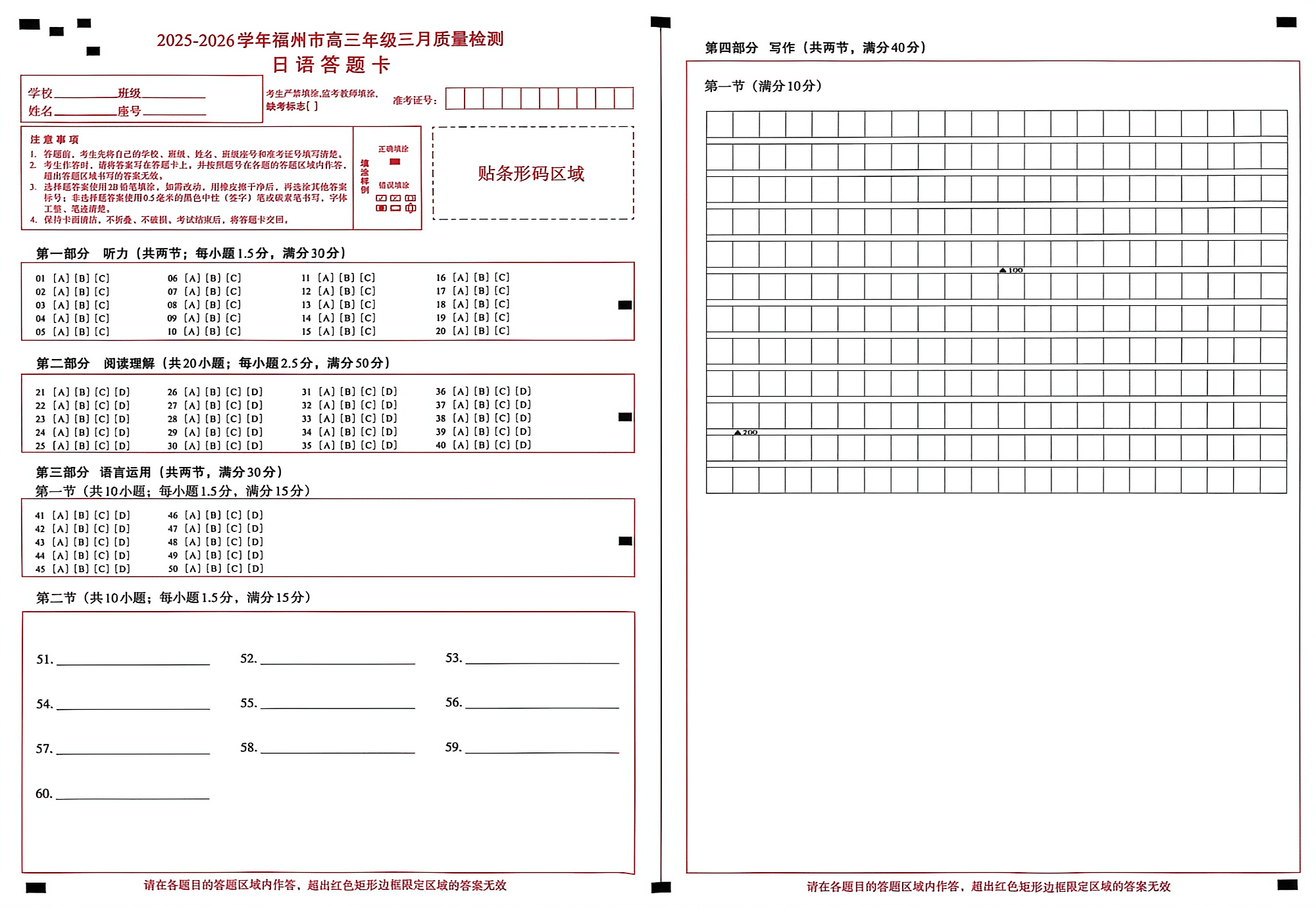 2025-2026学年福州市高三年级三月质量检测 日语答题卡.pdf