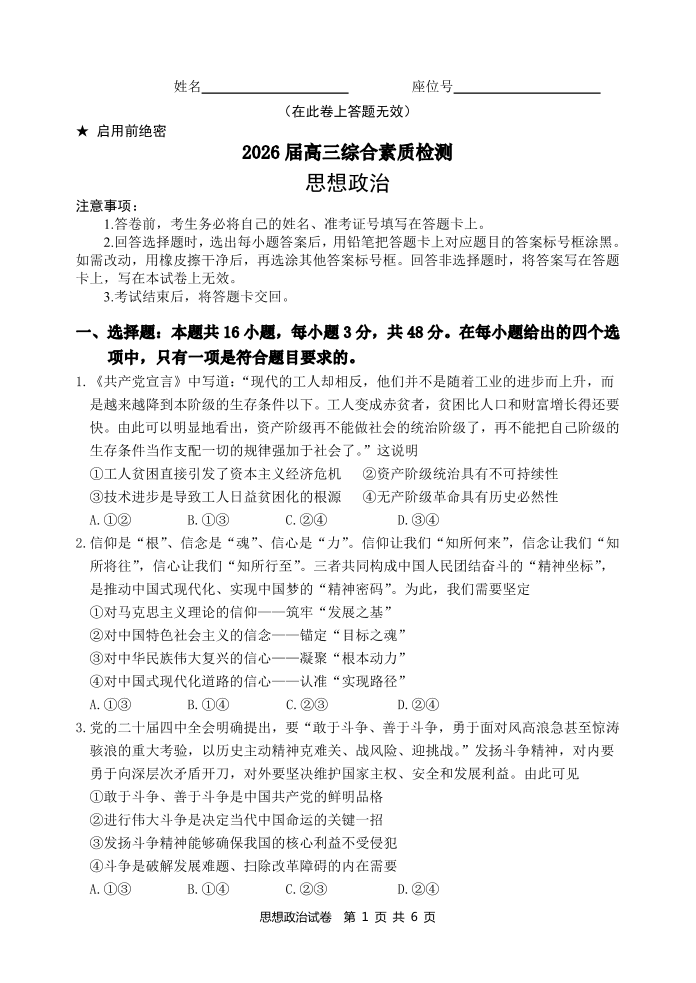江南十校2026届高三综合素质检测 政治.pdf