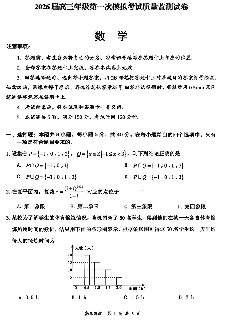 山西省大同市2026届高三年级第一次模拟考试质量监测 数学.pdf