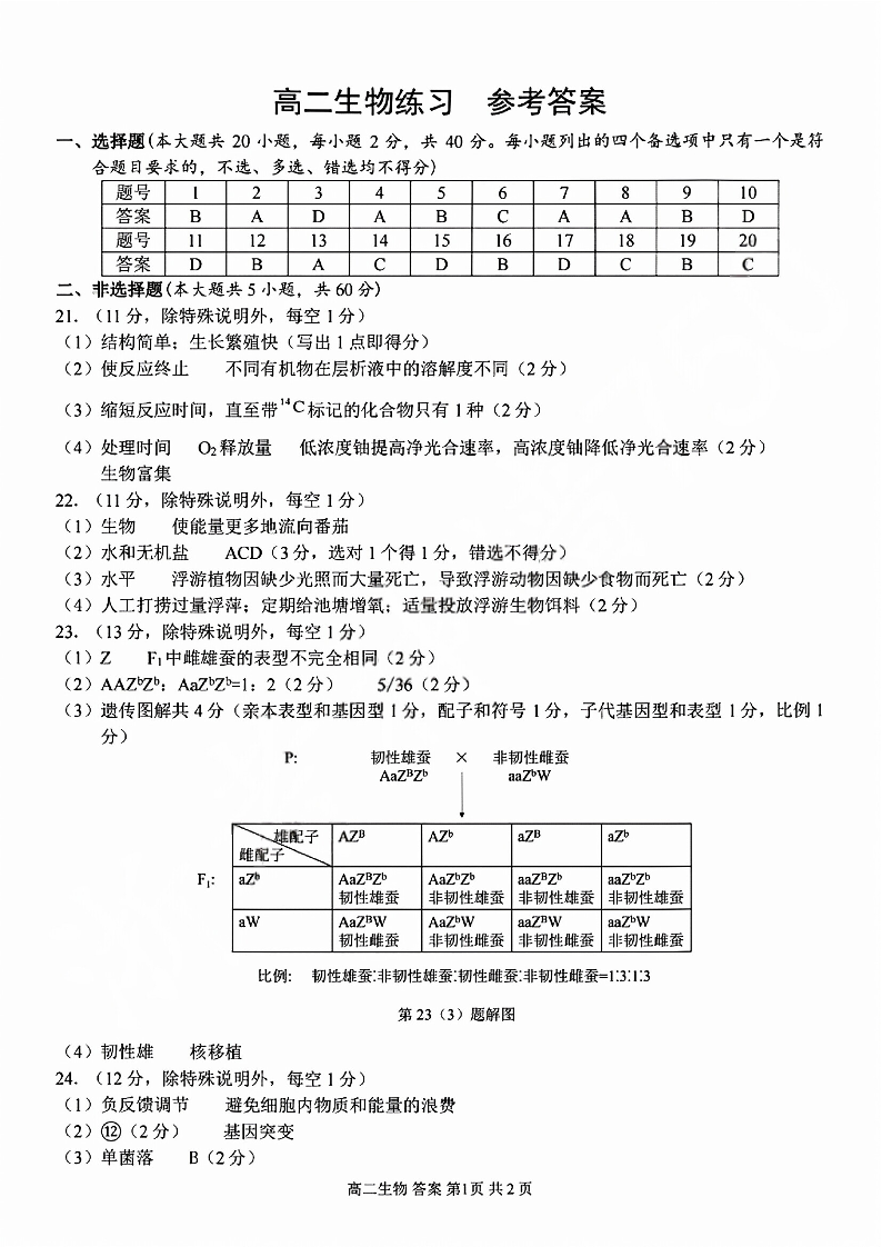 浙南名校联盟2026年高二年级下学期返校(开学)考试 生物答案.pdf