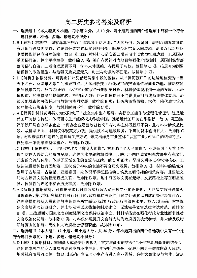 浙南名校联盟2026年高二年级下学期返校(开学)考试 历史答案.pdf