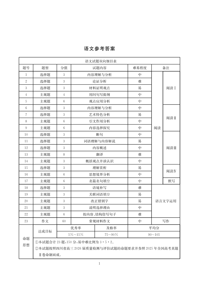 2025-2026学年高三下学期3月综合素质模拟预测 语文答案.pdf