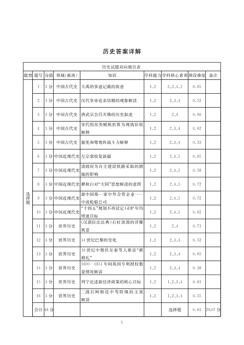 2025-2026学年高三下学期3月综合素质模拟预测 历史答案.pdf
