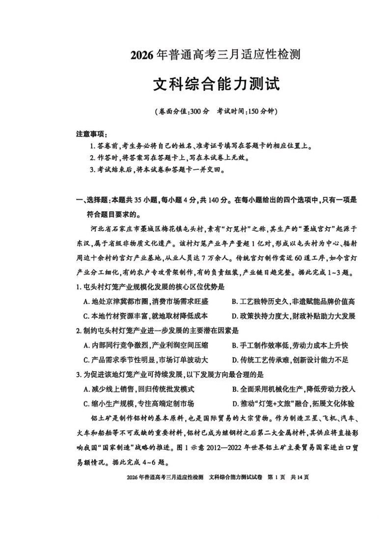 新疆2026年普通高考三月适应性检测 文综.pdf