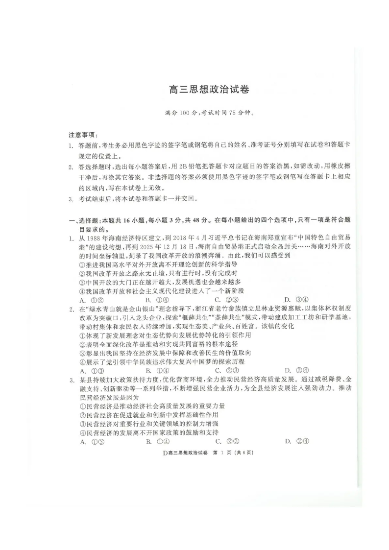 青海大通县朔山中学2025-2026学年高三下学期开学考试 政治.pdf