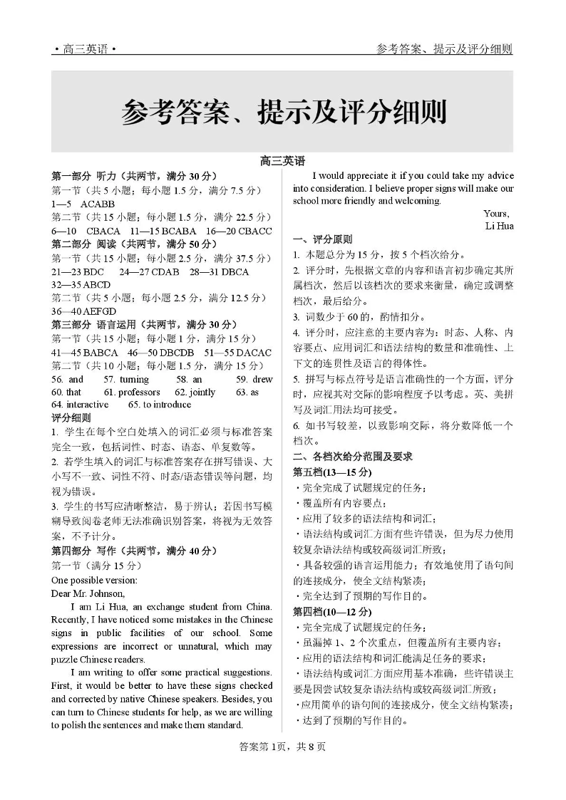 青海大通县朔山中学2025-2026学年高三下学期开学考试 英语答案.pdf