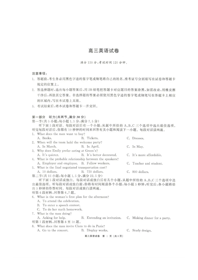 青海大通县朔山中学2025-2026学年高三下学期开学考试 英语.pdf