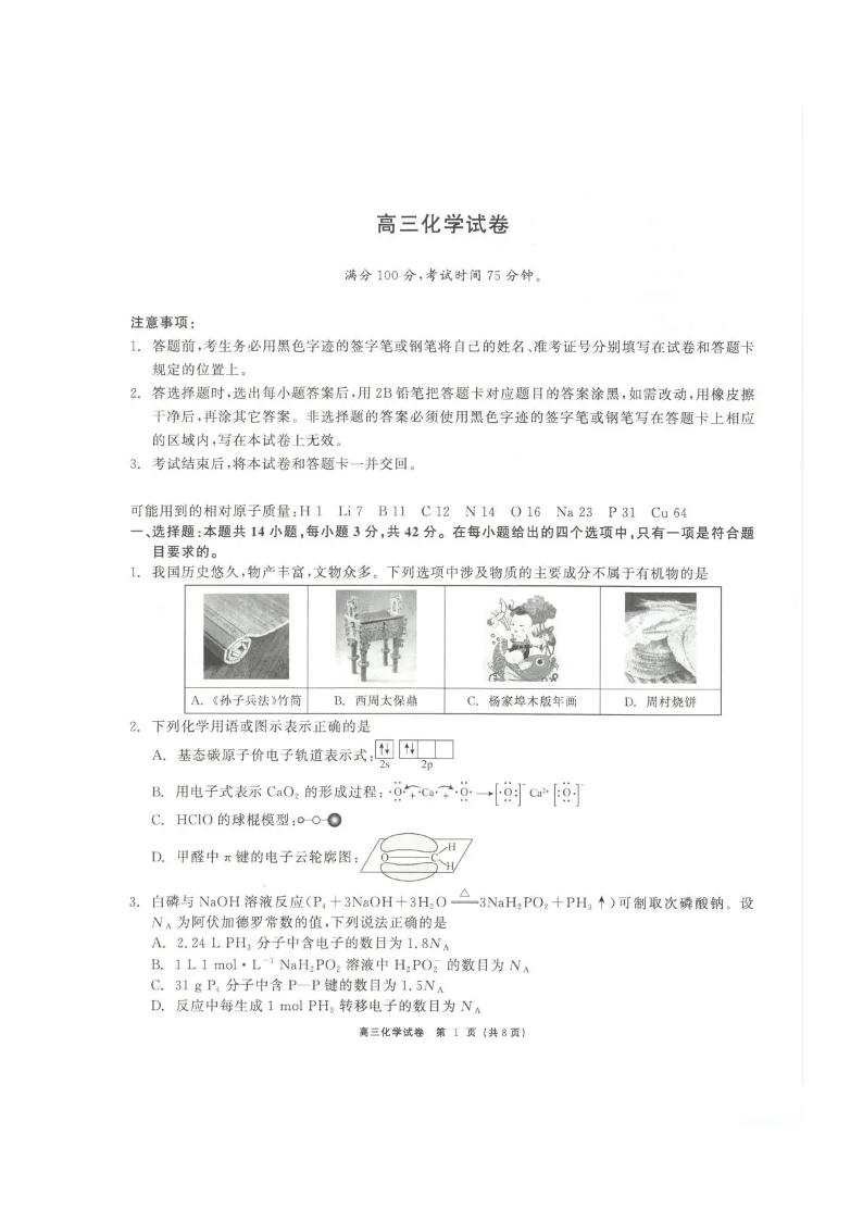 青海大通县朔山中学2025-2026学年高三下学期开学考试 化学.pdf