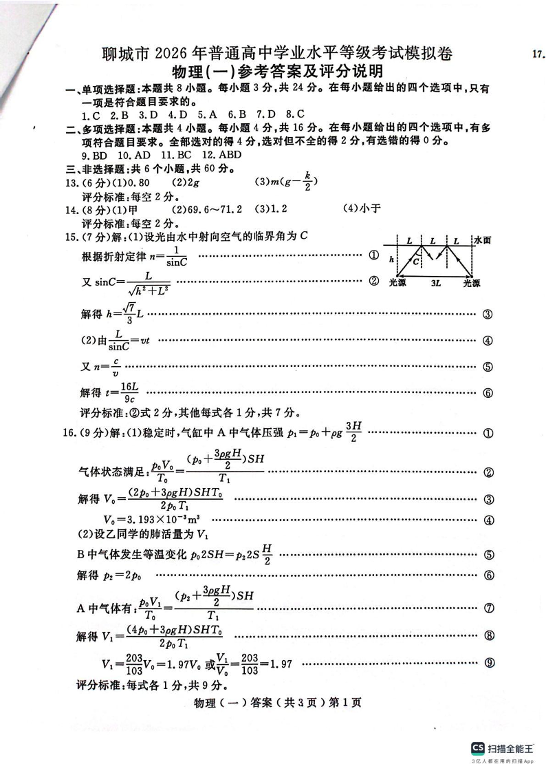 聊城市2026年普通高中学业水平等级考试模拟卷 物理答案.pdf