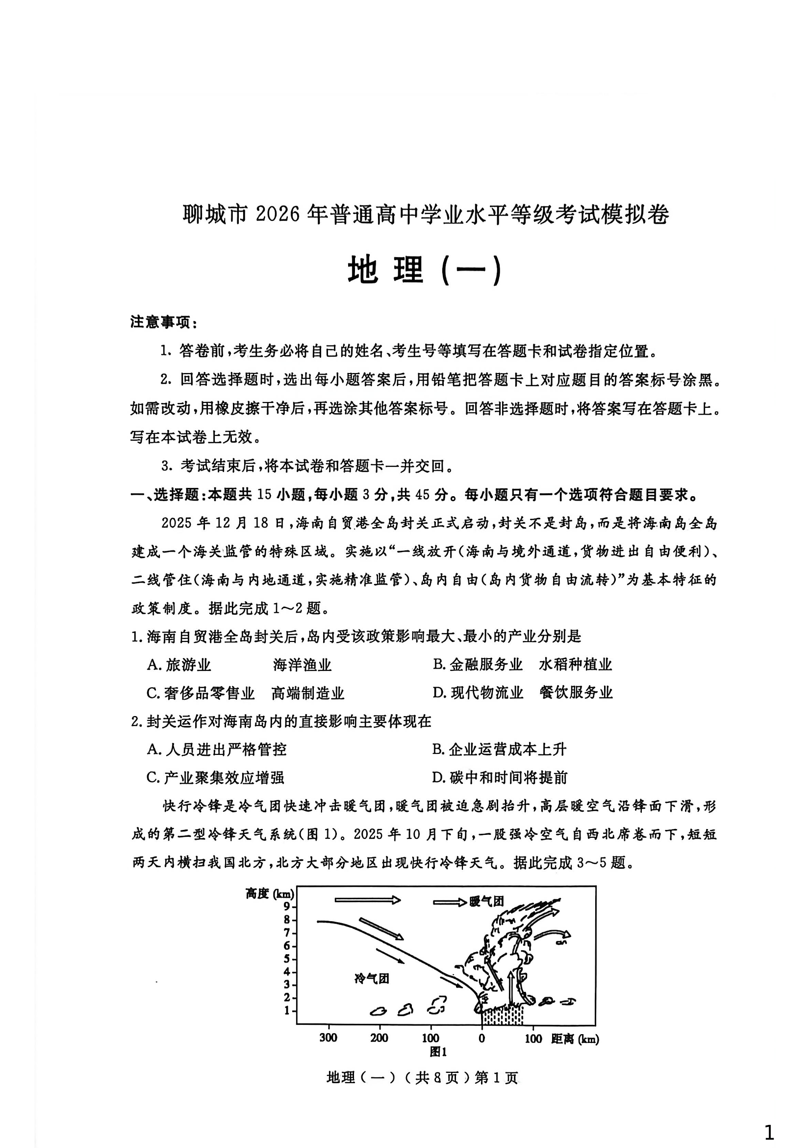 聊城市2026年普通高中学业水平等级考试模拟卷 地理.pdf