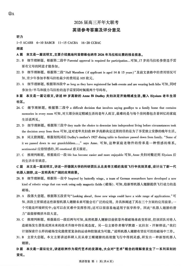 英语答案-百师联盟2026年高三年级下学期3月开年大联考.pdf