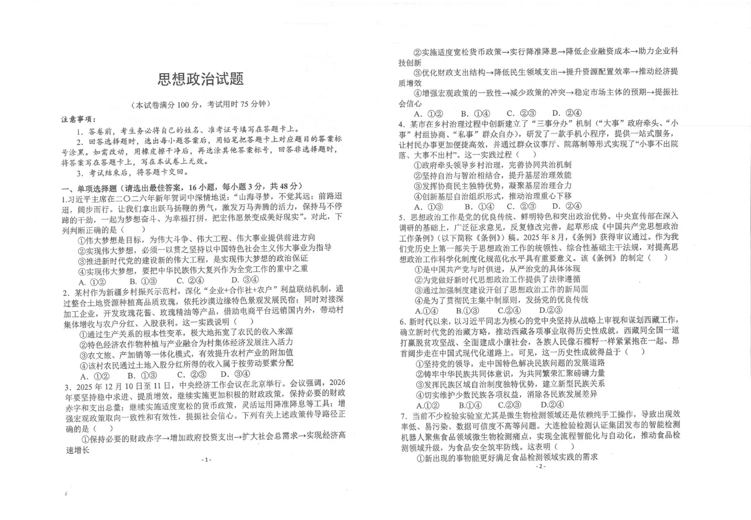 镇安中学2026届高三下学期二模考试 政治试题(含答案).pdf