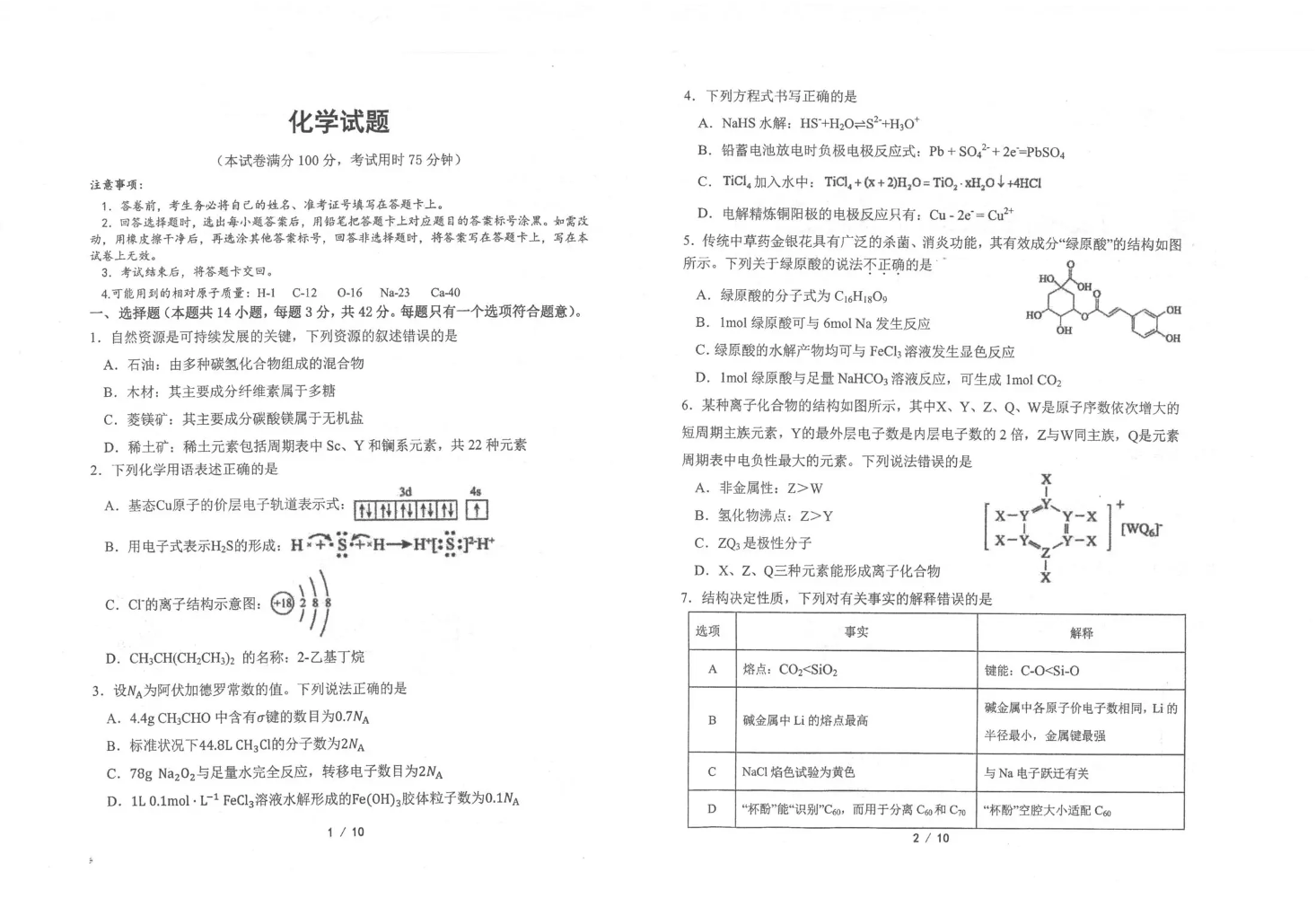 镇安中学2026届高三下学期二模考试 化学试题(含答案).pdf
