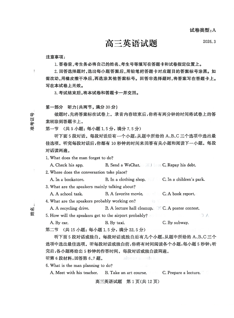 山东省滨州市2026届高三年级一模考试 英语.pdf