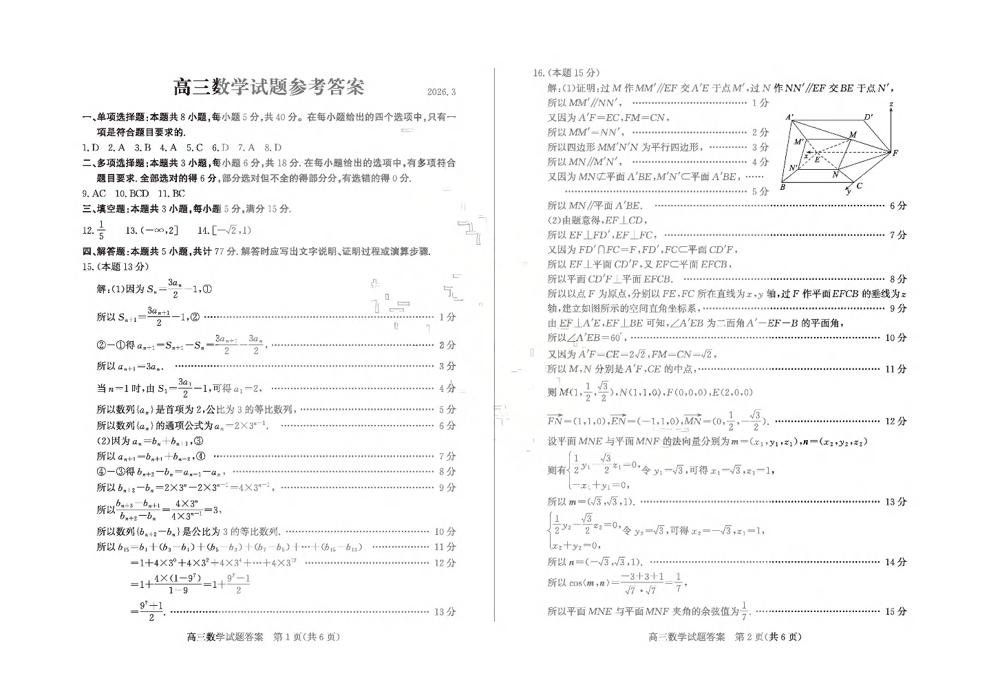 山东省滨州市2026届高三年级一模考试 数学答案.pdf