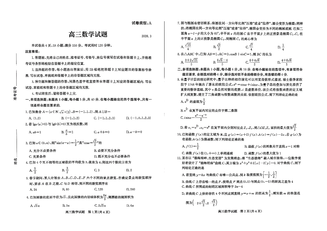 山东省滨州市2026届高三年级一模考试 数学.pdf